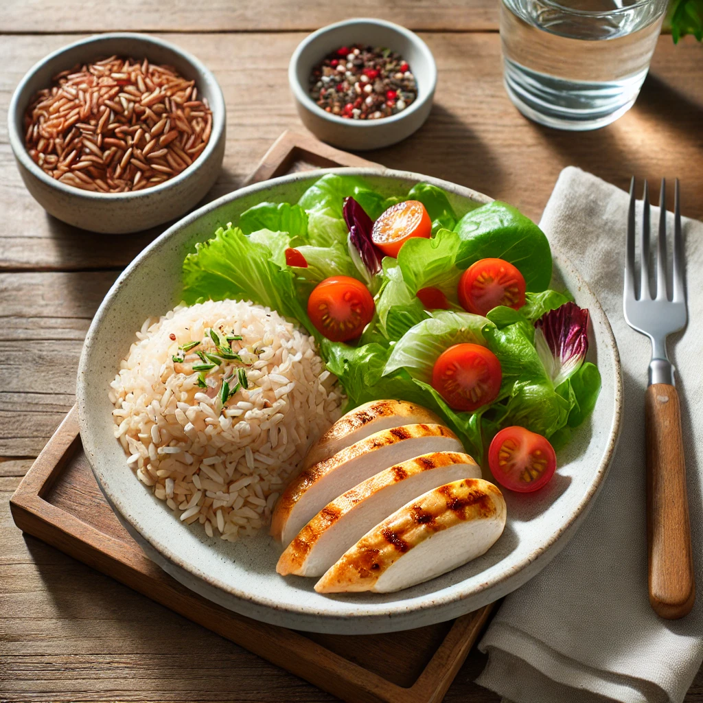 🍗 닭가슴살 + 🥗 채소 샐러드 + 🍚 현미밥