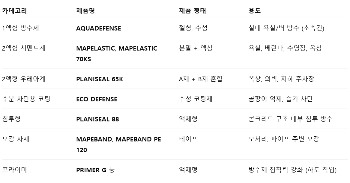 MAPEI는 단순한 방수제를 넘어, 전문 건축·토목 분야의 자재 전문 브랜드이며, 세계 3대 건축자재 브랜드 중 하나입니다.