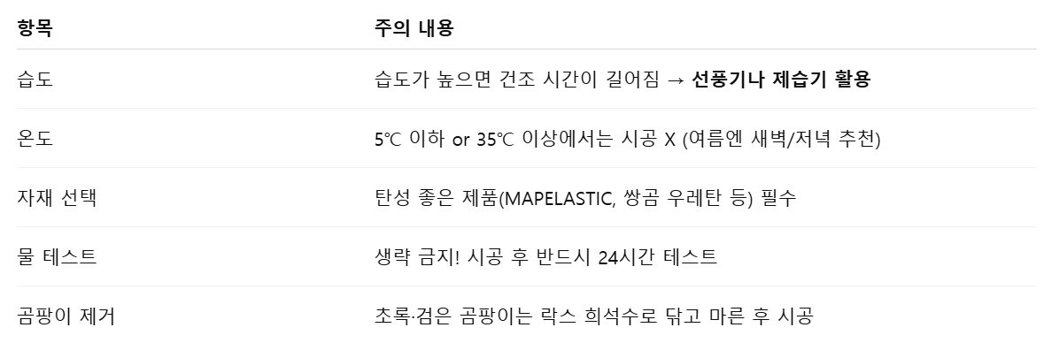 👉 팁: 물이 고일 수 있는 ‘배수 방향’도 고려!
