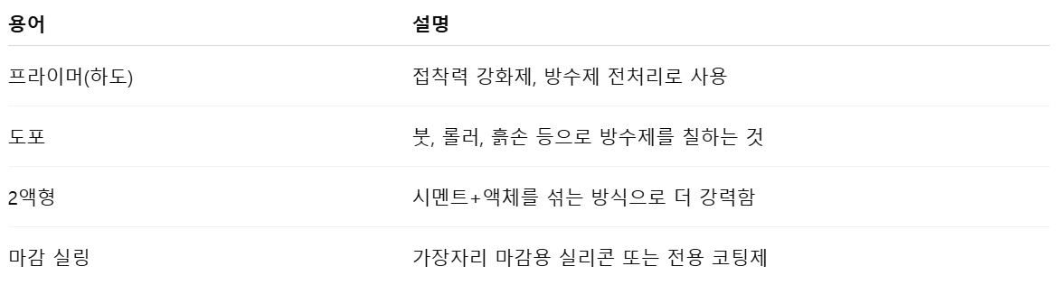 방수시공 용어