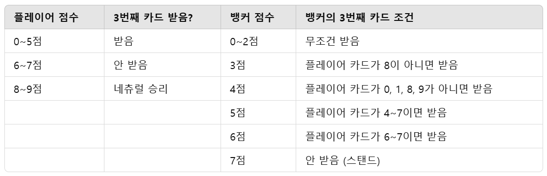 8 또는 9가 나오면 즉시 게임 종료 (네츄럴 승리)